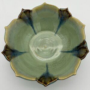 Joyce Inderbitzin Double Lotus Original Handmade Art Pottery Stoneware 8in Bowl