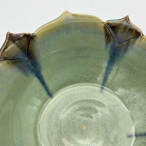 Glazed with alternating colors of greens, blue and black reminiscent of the beautiful lotus flower or the gingko leaf