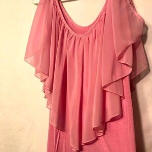 Joyce Leslie Pink T Shirt Lotus Deep V- Neck Chiffon Size S