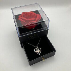 JoycuFF Rose Heart Initial Letter Pendant Necklace, a timeless gift for the special woman in your life. The heart-shaped pendant features sparkling cubic zirconia with an engraved "I Love You" message, symbolizing eternal love. Paired with a preserved real rose that lasts for years, this gift is both romantic and meaningful. The adjustable white gold-plated chain ensures comfort and elegance for everyday wear. Perfect for anniversaries, birthdays, Valentine’s Day, Mother’s Day, and all cherished occasions.