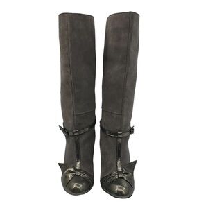 Joyfolie Charcoal Gray Lakin Tall Suede Block Heel Cap Toe Boots Size 9 Women's