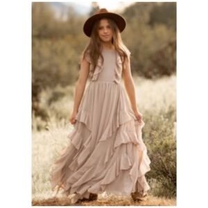 NWT Joyfolie Cottagecore Photo Shoot Tiered Maxi Sylviane Dress in Light Taupe. Size Girls 5.