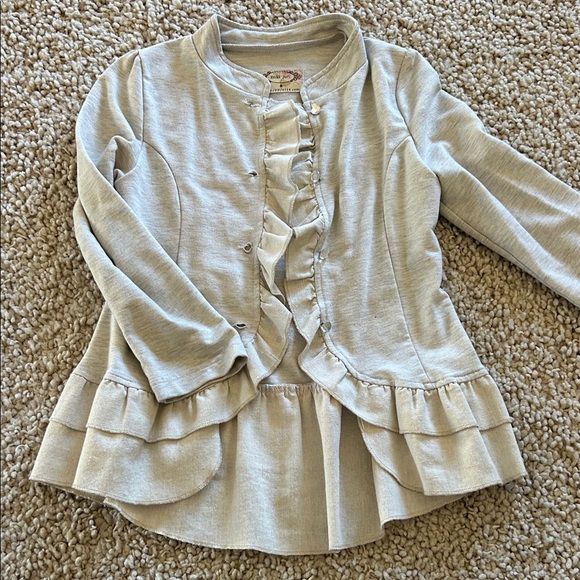 Elegant cream cardigan with layered ruffles. Soft and stylish for any occasion.