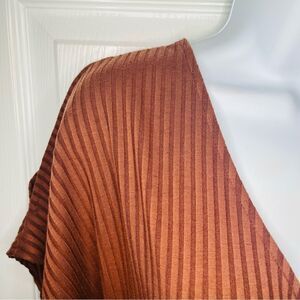 Joyfolie Everlynne Ribbed Jumpsuit Cold Shoulder Full Length Brown Clay Size Small. This jumpsuit is a timeless staple with an endlessly flattering look. Slits in sleeves. Pleats at center front. Shell button with elastic loop at top center back. Keyhole slit at back. Wide pant opening. Gathered elastic panel at back waistband. Flattering yoke at front waist 95% Polyester, 5% elastane Machine wash cold. Gently used Excellent Preowned Condition.
