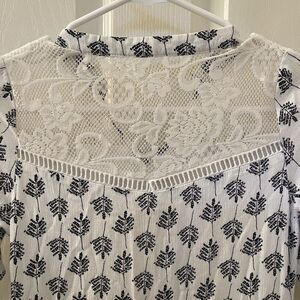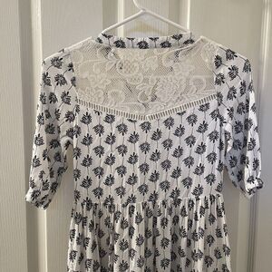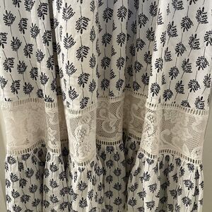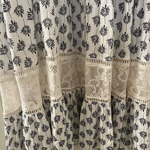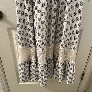 Joyfolie Mia Joy Alicia Maxi Dress Blue Leaf Print Boho Girls Size 8. Amazing dress. Beautiful soft cream and blue leaf boho printed fabric. With high quality lace all over the dress. Very long dress, all the way down to the ankle, this ran very long in my opinion. Has been worn, maybe some slight wear to the fabric, but no major issues that I can find. Good Used Condition.