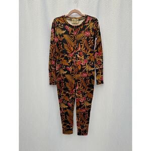 Soft one-piece sleep jumpsuit in a cozy fabric with floral details.