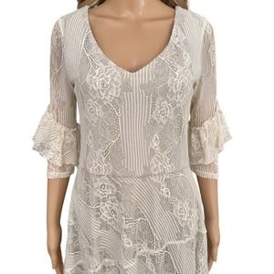 Joyfolie Mia Joy Marabel Dress Lace Asymmetrical hem boho Cream White Medium