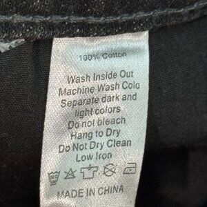This distressed denim mini skirt offers a chic, edgy style with its washed black finish, frayed hem, and durable cotton. Suitable for casual outings.