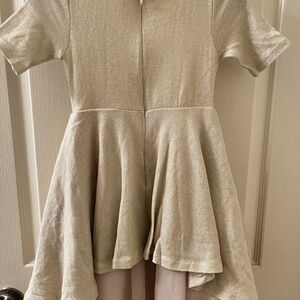 Joyfolie Roselyn Petticoat Dress in Gold Tulle Hi-Low Mia Joy Girls Size 5. This is such a beautiful dress, perfect for Christmas and the holidays. There are some light pulls on the knit material in places, but no other major issues that I can find. Good Used Condition.