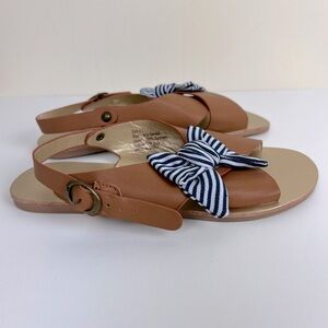 NWOT Striped Bow Criss Cross Sandal Brown With Navy White Bow. Size Girls 3.