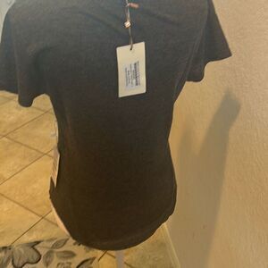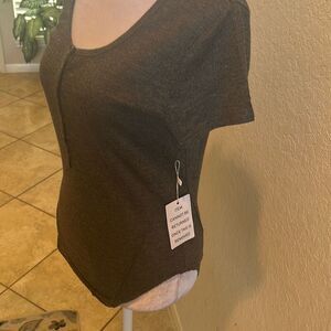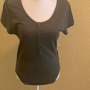 Joyfolie Size S Kamala Short Sleeve Henley Charcoal Gray Snap Neck Minimalist