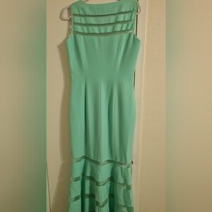 Joyful Mint Green Maxi Dress, Sleeveless with Mesh Detail, (Size 8)