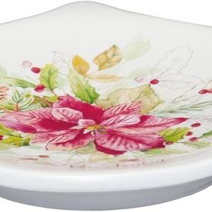 Christmas Print Design: Elevate your tea-time with our Joyful Holiday 4-Piece Melamine Teabag Holder Set. Each holder features a delightful print showcasing poinsettias, perfect for celebrating Christmas.