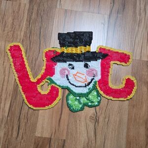 Joyful Snowman Cross-Stitch Wall Decor Holiday Christmas