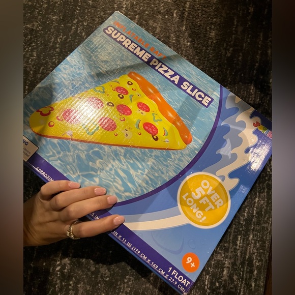 Fun inflatable pizza slice raft by Joyin. Features vibrant colors and playful design. Perfect for pool parties.