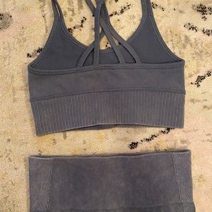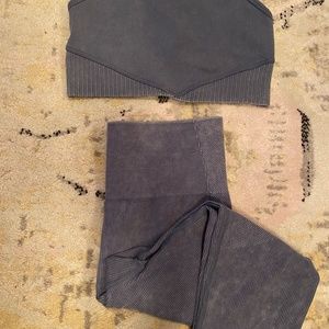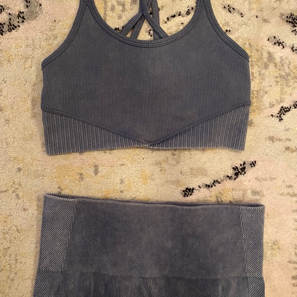 Super cute, comfy, stretchy set. New without tags!! Top is XS, bottom is S. Washed blue ribbed color.