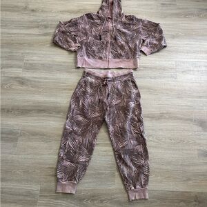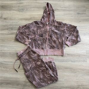 Joylab pink palm left zip up hoodie and sweatpants lounge set