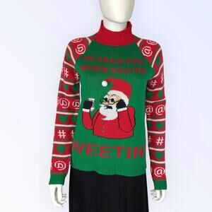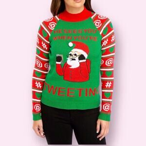 Joyland Holiday Ugly Sweater Humor Santa "Sees You When You're Tweeting"