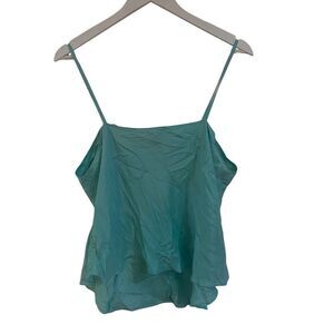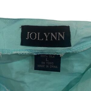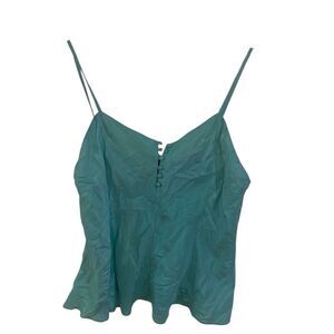 Joylynn Y2K inspired 100% silk sleeveless cloth button front medium greenish blue