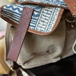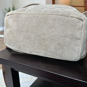 Great preowned condition except for a couple of stains on inside as seen in pictures. Spot cleaned and steamed. Two pockets outside one zip pocket inside. Measurements are approximate laying flat in pictures. Please scroll down to see all fifteen photos. Thank you for looking.