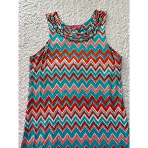 Joyous & Free Pink Teal Studded Striped Sleeveless Long Maxi Dress size Medium
