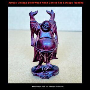 Joyous Vintage Solid Wood Hand Carved Fat & Happy Hotei Buddha
