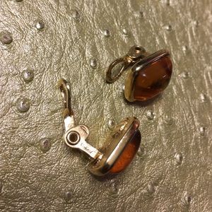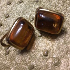 The perfect dress for these clip on earrings, wow!!! One inch long and a dark Carmel tone. Vintage💛
