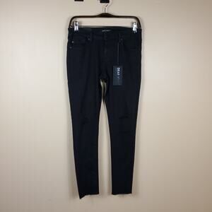 New with tags. Size 27. Look no further the perfect skinny denim has arrived! The Joyrich Ankle Skinny is a perfect jean for the fashionista that you are! This mid rise ankle skinny features a black wash rinse with five pocket styling and distressing throughout. We love these paired with an oversized boho top and open toe ankle boots for a chic trendy look!