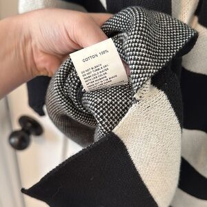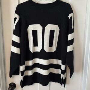 Chic Joyrich pullover with bold lettering. Features a striking black and white design.