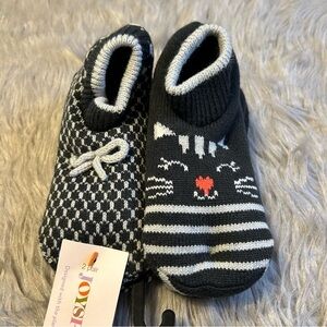 Joyspun Cat Slipper Socks Womens Shoe Size 4-10 Black Grey Fuzzy Lightweight