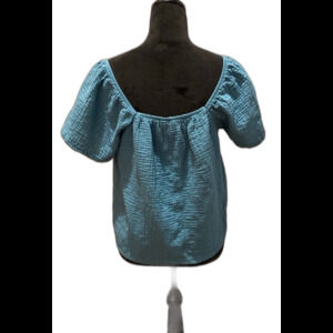 Joyspun Cropped Blouse Sz Large Top Dk Turquoise Off Shoulder Gathered Neckline