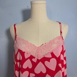Joyspun Large Red Pink Hearts Lacey Midi Summer Nightgown