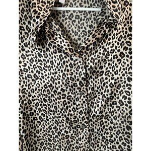 Joyspun Leopard Print Button-Up Satin Shirt L