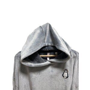 Joyspun Penguin Patch Cropped Teddy Hoodie Gray Size XL Cozy Winter Soft Casual