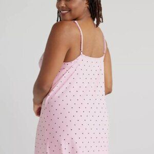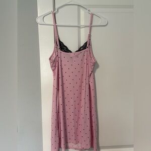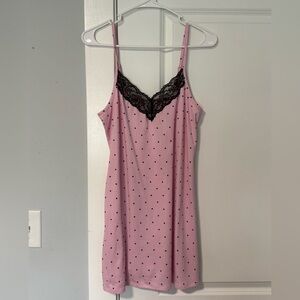 Joyspun Womenβs Lace Trim Knit Chemise Color Pink & Black Polkadot Sail size S