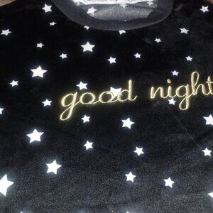 Joyspun Women's Pajama Shirt M (8-10) Black & White "Good Night" in gold embroidery Very pretty and soft I wish I had the bottoms Approximate Measurements: Pit to Pit 25" Length 24" Soft and silky