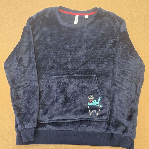 Joyspun Women's Pajama Top Blue With A Pocket At The Front Sz M(8-10) Llama NWT