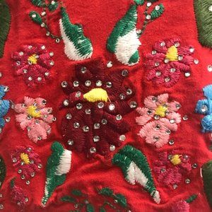 Joystick Johnny Was crystal dove cream red applique embroidered zip hoodie L