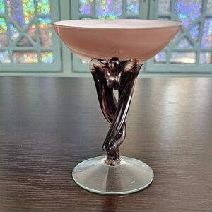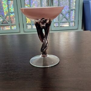 Beautiful vintage purple handcrafted Jozefina Krosno Poland Purple Swirl Ruffled Art Glass Bowl 5x4 inches.