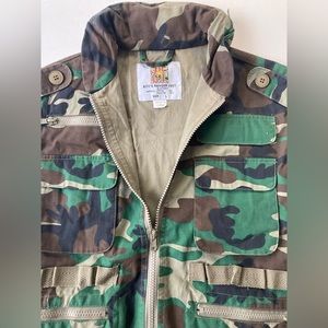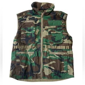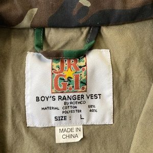 Jr G.I. Rangers Vest has green, brown, black camo.