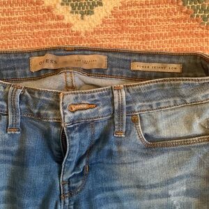 Guess Jeans. Light-Medium wash. Low rise. Skinny Jeans. Feels slightly stretchy. Size 27 regular. Runs small.