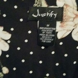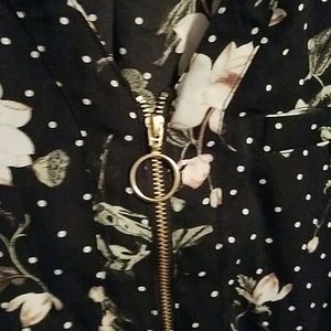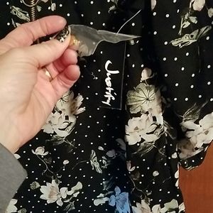 Polyester Jr Top.. Black with white dots and white flowers super cute sleeves 3/4