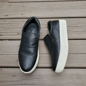 Jslides Acer Black Leather Platform Slip-On Sneaker Trainers Woman's 8