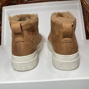 J/slides Nia Womens Waterproof Suede Bootie Size 8M Brown Faux Fur WORN ONCE LIKE NEW