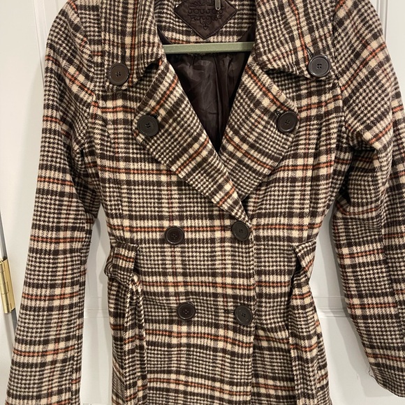 JuJu Brown Plaid Double-Breasted Trench Coat