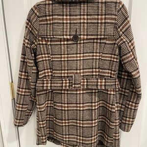 Chic plaid design with double-breasted front. Ideal for stylish layering.