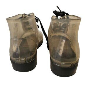 JuJu Clear Rubber Wellies Rain Booties Lace Up Black Tread Womens US 6 UK 4