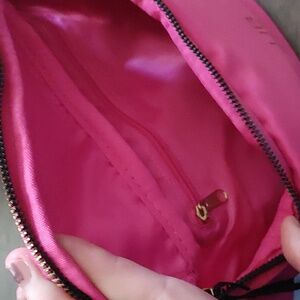 Elevate your style with the vibrant pink belt or crossbody bag. Can be Perfect for adding a pop of color to any outfit. Adjustable strap. Inside zipper pocket. Made in the USA.