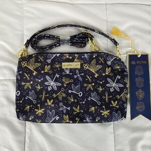 JuJuBe HP Flying Keys Be Quick Bag Pouch Clutch Harry Potter FK Blue Wand Midnight Blue Gold Hardware Wands Spells Lining