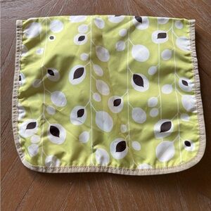 Chic Ju-Ju-Be tote and changing mat with a vibrant green leaf pattern. Accented with white and brown details.